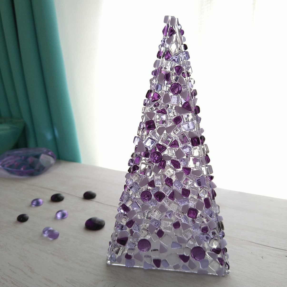 ■ガラスを切り出して、透明や不透明のお色のガラスのカケラをまとわせたとても美しいツリーです。